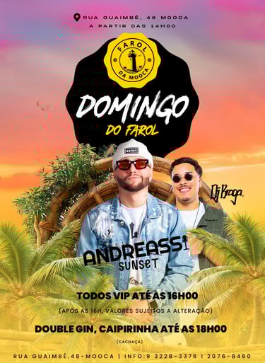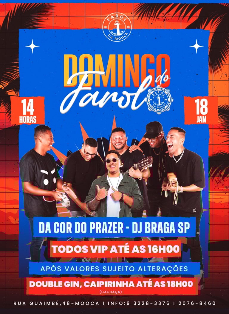 Venha com os amigos, família, curtir um domingo com um pagodinho contagiante. O Farol da Mooca abre as 14 horas para te receber. Entre em contato conosco e reserva uma mesa ou bistrô. Temos promoções de cerveja e drinks maravilhosos!