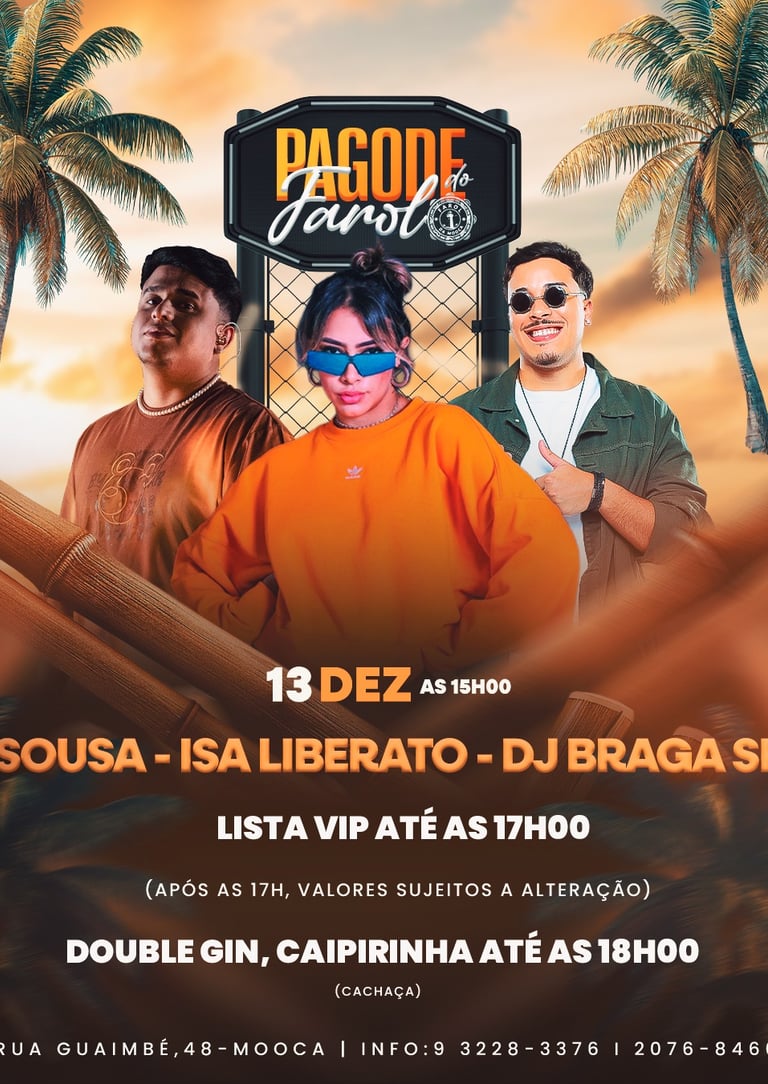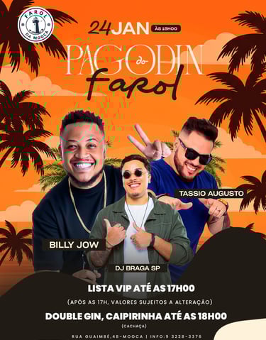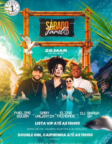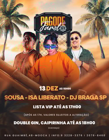 Aos Sabados nós temos duas bandas de pagode e um DJ, temos promoções de Gin e Caipirinha até as 18h. Horario de funcionamento é das 15h até as 00:00